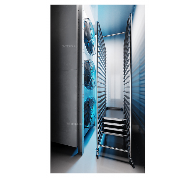 - Вместимость камеры: 1 тележка под GN1/1 или EN 40x60 (20 уровней)