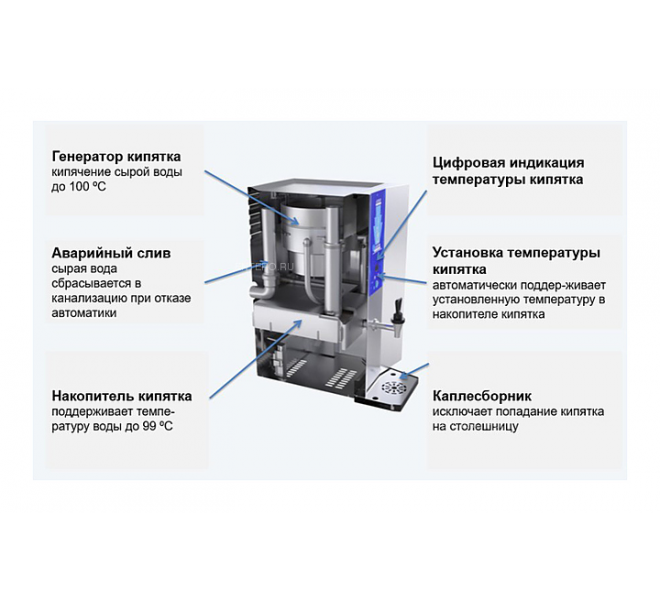 - Накопитель кипятка - поддержание температуры воды до 99 °С