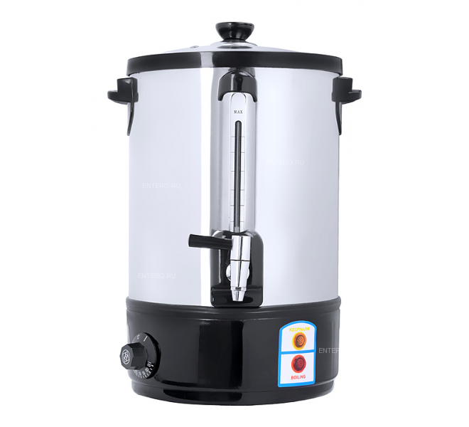 Кипятильник Rosso WB15pl предназначен для подогрева воды на предприятиях общественного питания и торговли. Модель оснащена терморегулятором и двойными стенками. Корпус выполнен из нержавеющей стали, ручки - из пластика.