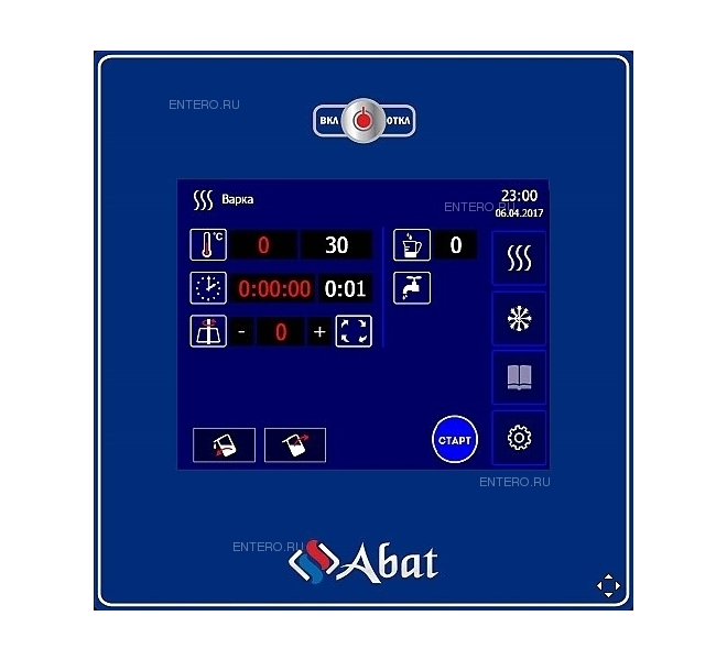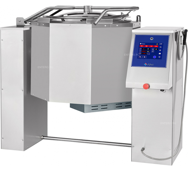 Варочный котел Abat КПЭМ-100-ОМП с функциями опрокидывания, перемешивания и охлаждения предназначен для приготовления вторых и третьих блюд, бульонов, соусов и десертов, а также для кипячения воды на предприятиях пищевой промышленности и общественного питания. Модель оснащена панелью управления с электронным TFT-экраном и пультом программного управления.