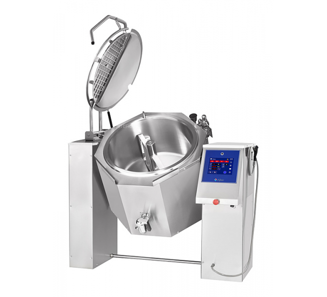 - Слив готового продукта путем опрокидывания варочного сосуда с помощью электропривода