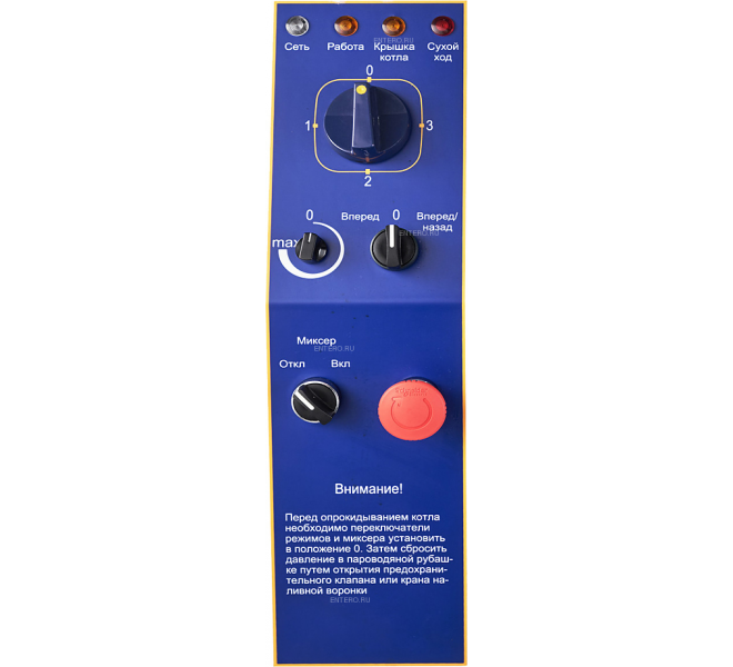 - Слив готового продукта путем ручного опрокидывания варочного сосуда с помощью червячной передачи