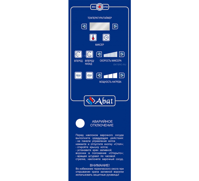 Варочный котел Abat КПЭМ-160-ОМР-В с функциями опрокидывания и перемешивания предназначен для приготовления вторых и третьих блюд, бульонов, соусов и десертов, а также для кипячения воды на предприятиях пищевой промышленности и общественного питания. Модель оснащена электронной панелью управления.