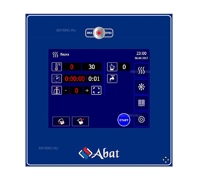 Варочный котел Abat КПЭМ-250-ОМП с функциями опрокидывания, перемешивания и охлаждения предназначен для приготовления вторых и третьих блюд, бульонов, соусов и десертов, а также для кипячения воды на предприятиях пищевой промышленности и общественного питания. Модель оснащена панелью управления с электронным TFT-экраном и пультом программного управления.