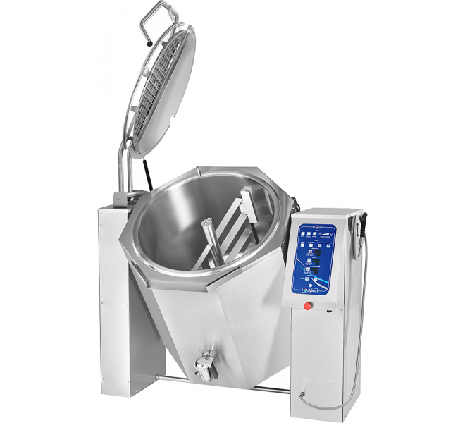 - Слив готового продукта путем опрокидывания варочного сосуда с помощью электропривода