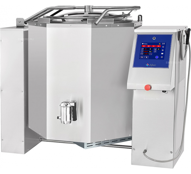 Варочный котел Abat КПЭМ-350-ОМП с функциями опрокидывания, перемешивания и охлаждения предназначен для приготовления вторых и третьих блюд, бульонов, соусов и десертов, а также для кипячения воды на предприятиях пищевой промышленности и общественного питания. Модель оснащена панелью управления с электронным TFT-экраном, пультом программного управления и сливным краном, позволяющим производить слив готового продукта без опрокидывания.