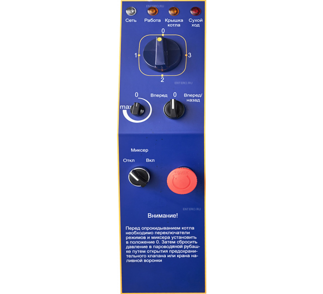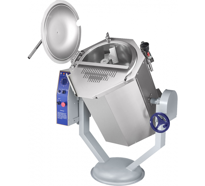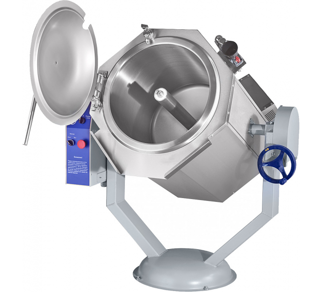 - Слив готового продукта путем ручного опрокидывания варочного сосуда с помощью червячной передачи