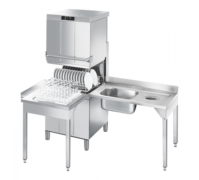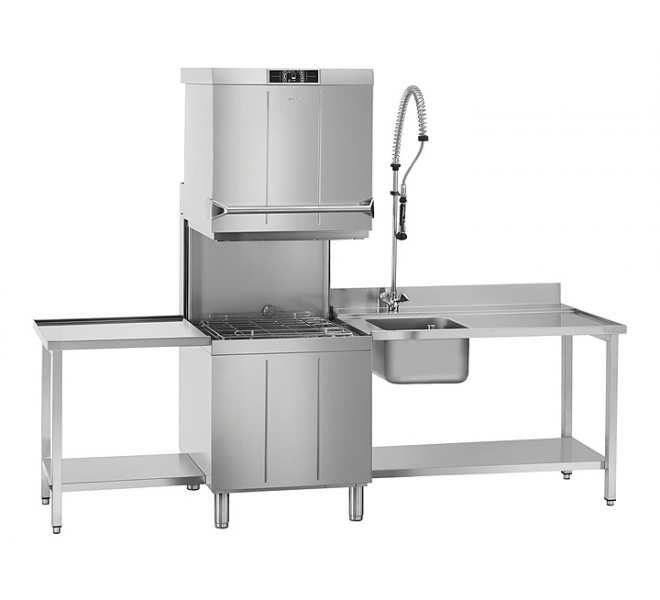Купольная посудомоечная машина Smeg HTY625DEH серии TopLine используется на предприятиях общественного питания и торговли для мойки столовых приборов, тарелок, стаканов, чашек и другой посуды. Модель оснащена электронной панелью управления. Корпус, моющие и ополаскивающие рукава выполнены из нержавеющей стали AISI 304.