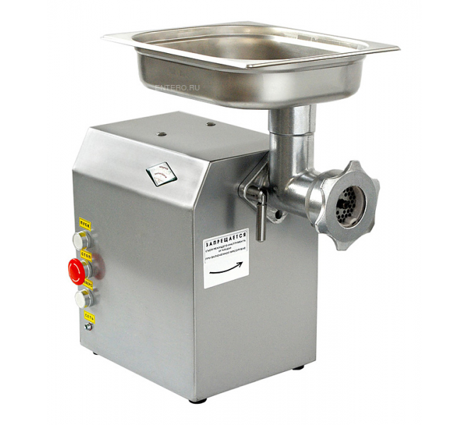 Мясорубка БЕЛТОРГМАШ МИМ-80-01 используется на предприятиях общественного питания, торговли, а также в производственных цехах, деятельность которых связана с выпуском гастрономических товаров, для измельчения мяса и рыбы на фарш, повторного измельчения котлетной массы и набивки колбас. Модель оснащена приводом, съемной чашей и функцией "Реверс", которая позволяет при наматывании жил освободить шнек без дополнительной разборки машин. Корпус выполнен из алюминия, облицовка - из нержавеющей стали.
