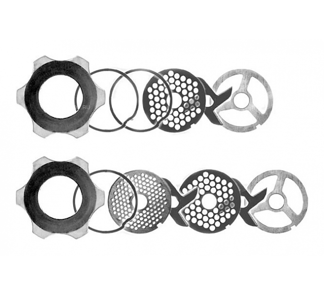 В комплект поставки входят подрезной нож, 2 крестовых ножа и 2 решетки.