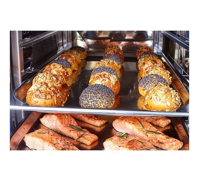 ⭐⭐⭐⭐⭐ Пароконвектомат Abat ПКА10-1/1ПМ2 предназначен для обжаривания, приготовления на пару, бланширования, запекания и других видов тепловой обработки продуктов на предприятиях общественного питания и торговли. Оборудование заменяет сразу несколько видов приборов: плиту, конвекционную печь, жарочный шкаф, духовку, опрокидывающуюся сковороду, пищеварочный котел, фритюрницу и др. Приготовленные в пароконвектомате блюда сохраняют все полезные вещества. Модель оснащена подсветкой, легкосъемным жировым фильтром, душем для мойки и дверью с двойным остеклением.