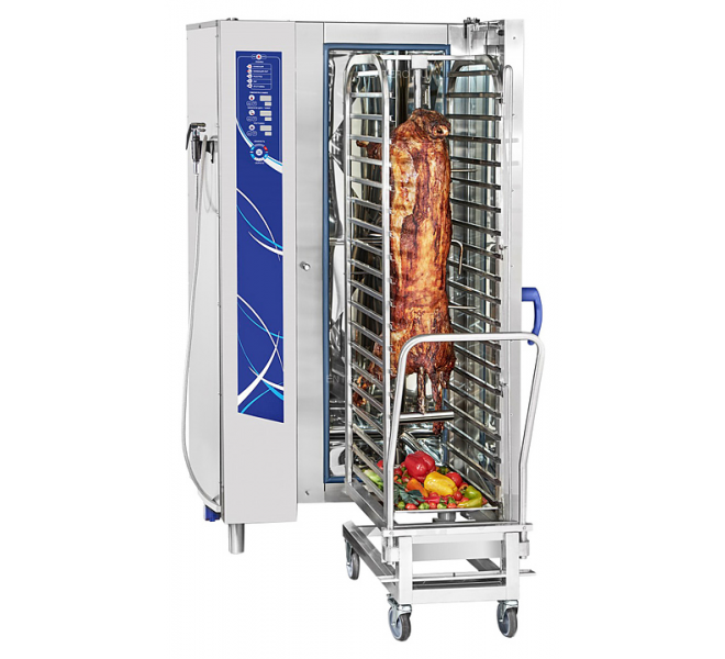 Пароконвектомат Abat ПКА 20-1/1ПМ2-01 предназначен для обжаривания, приготовления на пару, бланширования, запекания и других видов тепловой обработки продуктов на предприятиях общественного питания и торговли. Оборудование заменяет сразу несколько видов приборов: плиту, конвекционную печь, жарочный шкаф, духовку, опрокидывающуюся сковороду, пищеварочный котел, фритюрницу и др. Приготовленные в пароконвектомате блюда сохраняют все полезные вещества. Модель оснащена подсветкой, легкосъемным жировым фильтром, душем для мойки и дверью с двойным остеклением.