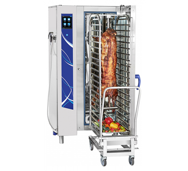 Пароконвектомат Abat ПКА 20-1/1ВП2 предназначен для обжаривания, приготовления на пару, бланширования, запекания и других видов тепловой обработки продуктов на предприятиях общественного питания и торговли. Оборудование заменяет сразу несколько видов приборов: плиту, конвекционную печь, жарочный шкаф, духовку, опрокидывающуюся сковороду, пищеварочный котел, фритюрницу и др. Приготовленные в пароконвектомате блюда сохраняют все полезные вещества. Модель оснащена подсветкой, системой охлаждения слива,встроенным лотком для сбора конденсата и дверью с двойным остеклением.