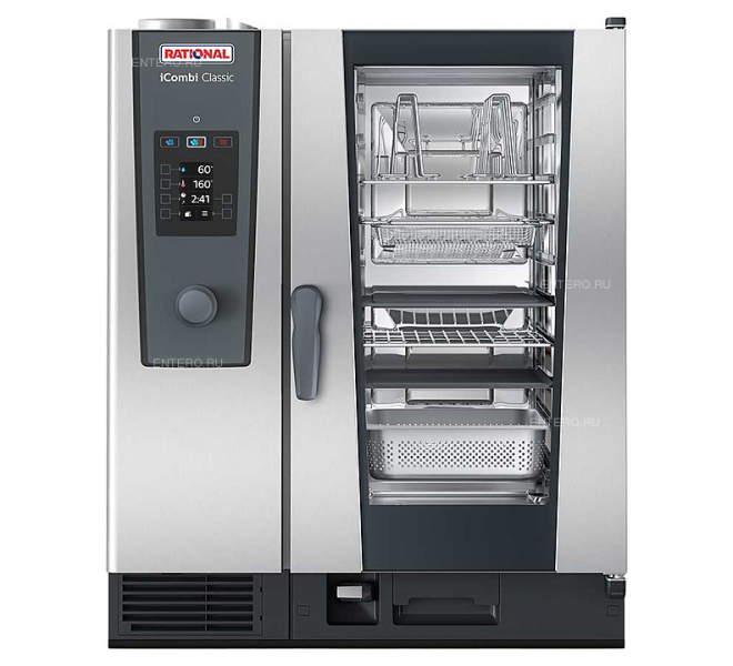 Пароконвектомат Rational iCombi Classic 10-1/1 предназначен для приготовления блюд путём жарки, тушения или варения на предприятиях общественного питания и торговли. Такое оборудование может заменить плиту, жарочный и духовой шкаф, конвекционную печь, опрокидывающуюся сковороду, пищеварочный котел и др. Модель оснащена цветным TFT-дисплеем с мягкими кнопками и поворотным регулятором с функцией Push.