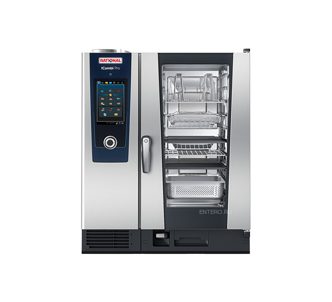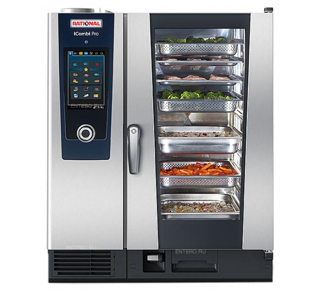 Пароконвектомат Rational iCombi Pro 10-1/1 предназначен для приготовления блюд путём жарки, тушения или варения на предприятиях общественного питания и торговли. Такое оборудование может заменить плиту, жарочный и духовой шкаф, конвекционную печь, опрокидывающуюся сковороду, пищеварочный котел и др. Модель оснащена цветным 8,5 дюймовым TFT-монитором, сенсорным экраном с самообъясняющими символами.