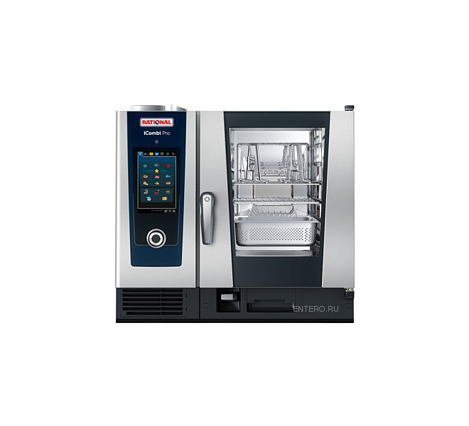 Пароконвектомат Rational iCombi Pro 6-1/1 предназначен для приготовления блюд путём жарки, тушения или варения на предприятиях общественного питания и торговли. Такое оборудование может заменить плиту, жарочный и духовой шкаф, конвекционную печь, опрокидывающуюся сковороду, пищеварочный котел и др. Модель оснащена цветным 8,5 дюймовым TFT-монитором, сенсорным экраном с самообъясняющими символами.