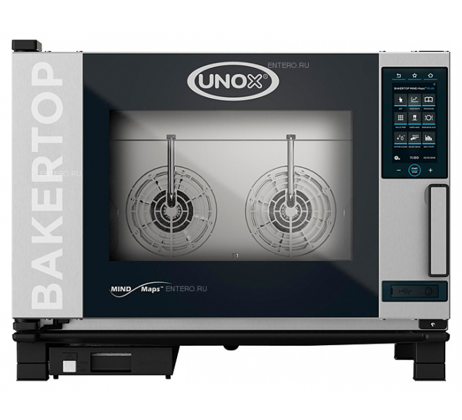 Печь конвекционная UNOX XEBC-04EU-E1RM серии BAKERTOP MIND.Maps™ ONE предназначена для выпечки хлебобулочных и кондитерских изделий на предприятиях общественного питания и торговли, в пекарнях и кондитерских. Модель оснащена электронным управлением и встоенной в дверь светодиодной подсветкой. Легко открывающееся внутреннее стекло облегчают чистку и обеспечивает максимальную гигиену. Камера с закругленными углами выполнена из нержавеющей стали AISI 304, направляющие - из профилированной стали, дверной замок - из высокопрочного самосмазывающегося технополимера, внутренний штифт дверной ручки - из углеродного волокна.