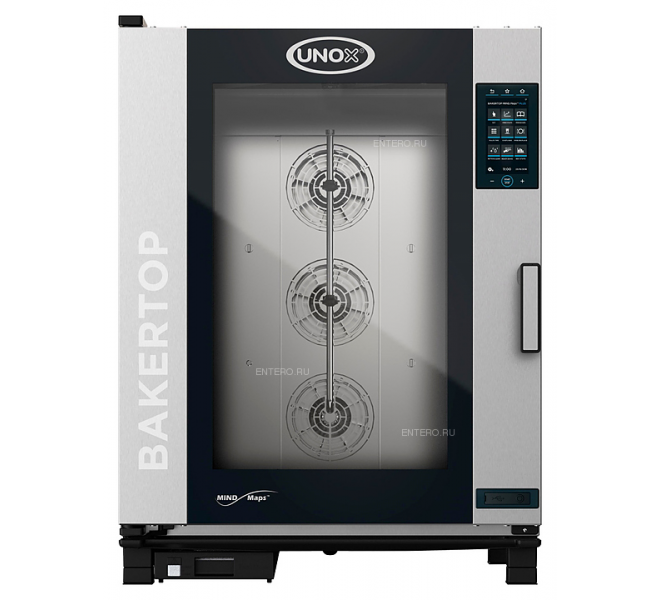 Печь конвекционная UNOX XEBC-10EU-GPRM серии BAKERTOP MIND.Maps™ предназначена для приготовления различных блюд, выпечки хлебобулочных и кондитерских изделий на предприятиях общественного питания и торговли, в пекарнях и кондитерских. Модель оснащена электронным управлением и встоенной в дверь светодиодной подсветкой. Легко открывающееся внутреннее стекло облегчают чистку и обеспечивает максимальную гигиену. Камера с закругленными углами выполнена из нержавеющей стали AISI 304, направляющие - из профилированной стали, дверной замок - из высокопрочного самосмазывающегося технополимера, внутренний штифт дверной ручки - из углеродного волокна.