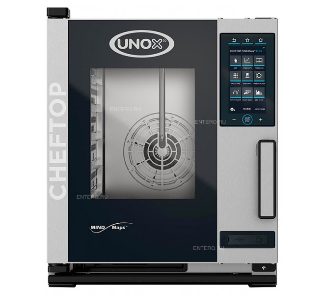Пароконвектомат UNOX XECC-0513-EPRM серии COMPACT CHEFTOP MIND.Maps™ PLUS предназначен для приготовления различных блюд, выпечки хлебобулочных и кондитерских изделий на предприятиях общественного питания и торговли, в пекарнях и кондитерских. Модель оснащена встроенной в дверь светодиодной LED-подсветкой и C-образными с зубчатыми нишами направляющими. Внутреннее открывающееся стекло облегчает чистку и обеспечивает максимальную гигиену. Камера с закругленными углами выполнена из нержавеющей стали AISI 304, направляющие - из профилированной стали, дверной замок - из высокопрочного самосмазывающегося технополимера, внутренний штифт дверной ручки - из углеродного волокна.
