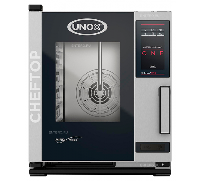 Пароконвектомат UNOX XECC-0523-E1RM серии CHEFTOP MIND.Maps™ ONE предназначен для приготовления различных блюд, выпечки хлебобулочных и кондитерских изделий на предприятиях общественного питания и торговли, в пекарнях и кондитерских. Модель оснащена встроенной в дверь светодиодной LED-подсветкой и C-образными с зубчатыми нишами направляющими. Внутреннее открывающееся стекло облегчает чистку и обеспечивает максимальную гигиену. Камера с закругленными углами выполнена из нержавеющей стали AISI 304, направляющие - из профилированной стали, дверной замок - из высокопрочного самосмазывающегося технополимера, внутренний штифт дверной ручки - из углеродного волокна.