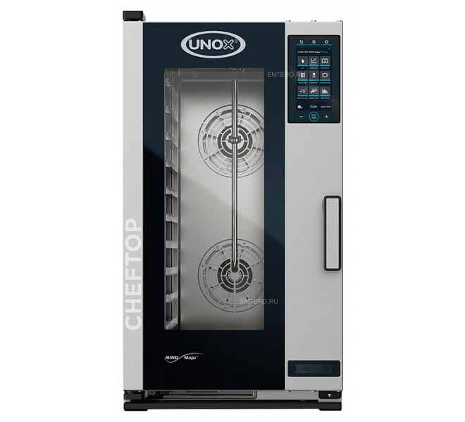 Пароконвектомат UNOX XECC-1013-EPRM серии COMPACT CHEFTOP MIND.Maps™ PLUS предназначен для приготовления различных блюд, выпечки хлебобулочных и кондитерских изделий на предприятиях общественного питания и торговли, в пекарнях и кондитерских. Модель оснащена встроенной в дверь светодиодной LED-подсветкой и C-образными с зубчатыми нишами направляющими. Внутреннее открывающееся стекло облегчает чистку и обеспечивает максимальную гигиену. Камера с закругленными углами выполнена из нержавеющей стали AISI 304, направляющие - из профилированной стали, дверной замок - из высокопрочного самосмазывающегося технополимера, внутренний штифт дверной ручки - из углеродного волокна.