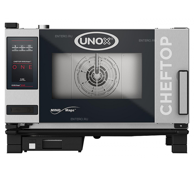 Пароконвектомат UNOX XEVC-0311-E1RM серии CHEFTOP MIND.Maps™ ONE предназначен для приготовления различных блюд, выпечки хлебобулочных и кондитерских изделий на предприятиях общественного питания и торговли, в пекарнях и кондитерских. Модель оснащена встроенной в дверь светодиодной LED-подсветкой и C-образными с зубчатыми нишами направляющими. Внутреннее открывающееся стекло облегчает чистку и обеспечивает максимальную гигиену. Камера с закругленными углами выполнена из нержавеющей стали AISI 304, направляющие - из профилированной стали, дверной замок - из высокопрочного самосмазывающегося технополимера, внутренний штифт дверной ручки - из углеродного волокна.