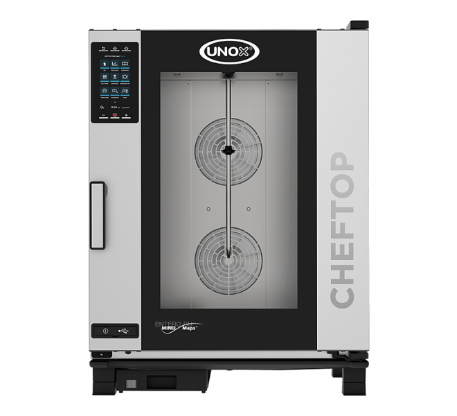 Пароконвектомат UNOX XEVC-1011-EPL серии ChefTop MIND.Maps предназначен для приготовления различных блюд, выпечки хлебобулочных и кондитерских изделий на предприятиях общественного питания и торговли, в пекарнях и кондитерских. Модель оснащена подсветкой посредством внешней LED-лампы и C-образными с зубчатыми нишами направляющими. Внутреннее открывающееся стекло облегчают чистку и обеспечивают максимальную гигиену. Камера с закругленными углами выполнена из нержавеющей стали AISI 304, направляющие - из профилированной стали, дверной замок - из высокопрочного самосмазывающегося технополимера, внутренний штифт дверной ручки - из углеродного волокна.