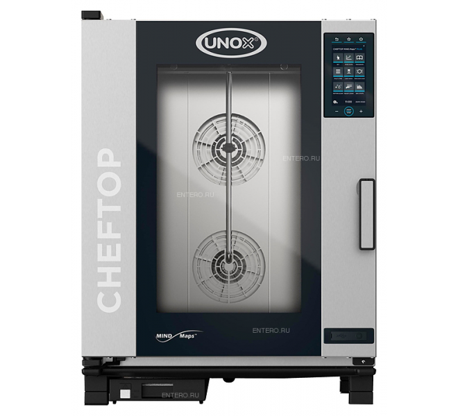 Пароконвектомат UNOX XEVC-1011-EPRM серии CHEFTOP MIND.Maps™ PLUS предназначен для приготовления различных блюд, выпечки хлебобулочных и кондитерских изделий на предприятиях общественного питания и торговли, в пекарнях и кондитерских. Модель оснащена встроенной в дверь светодиодной LED-подсветкой и C-образными с зубчатыми нишами направляющими. Внутреннее открывающееся стекло облегчает чистку и обеспечивает максимальную гигиену. Камера с закругленными углами выполнена из нержавеющей стали AISI 304, направляющие - из профилированной стали, дверной замок - из высокопрочного самосмазывающегося технополимера, внутренний штифт дверной ручки - из углеродного волокна.