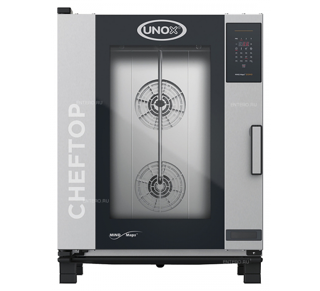 Пароконвектомат UNOX XEVC-1011-EZRM серии CHEFTOP MIND.Maps™ ZERO предназначен для приготовления различных блюд, выпечки хлебобулочных и кондитерских изделий на предприятиях общественного питания и торговли, в пекарнях и кондитерских. Модель оснащена встроенной в дверь светодиодной LED-подсветкой и C-образными с зубчатыми нишами направляющими. Внутреннее открывающееся стекло облегчает чистку и обеспечивает максимальную гигиену. Камера с закругленными углами выполнена из нержавеющей стали AISI 304, направляющие - из профилированной стали, дверной замок - из высокопрочного самосмазывающегося технополимера, внутренний штифт дверной ручки - из углеродного волокна.
