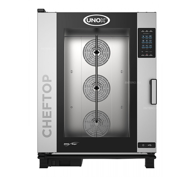 Пароконвектомат UNOX XEVC-1021-GPR серии ChefTop MIND.Maps предназначен для приготовления различных блюд, выпечки хлебобулочных и кондитерских изделий на предприятиях общественного питания и торговли, в пекарнях и кондитерских. Модель оснащена подсветкой посредством внешней LED-лампы и C-образными с зубчатыми нишами направляющими. Внутреннее открывающееся стекло облегчают чистку и обеспечивают максимальную гигиену. Камера с закругленными углами выполнена из нержавеющей стали AISI 304, направляющие - из профилированной стали, дверной замок - из высокопрочного самосмазывающегося технополимера, внутренний штифт дверной ручки - из углеродного волокна.