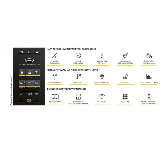 - Технология STEAM.Plus: комби-режим, комбинированная выпечка конвенция пар (0-20-40-60-80-100%)