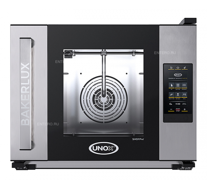 Печь конвекционная UNOX XEFT-04HS-EMLV серии BakerLux Shop.Pro предназначена для приготовления различных блюд, выпечки хлебобулочных и кондитерских изделий на предприятиях общественного питания и торговли, в пекарнях и кондитерских. Модель оснащена электронным управлением, светодиодной подсветкой и направляющими с механизмом для предотвращения опрокидывания. Легко открывающееся внутреннее стекло облегчают чистку и обеспечивает максимальную гигиену. Камера выполнена из нержавеющей стали, направляющие - из хромированной стали.