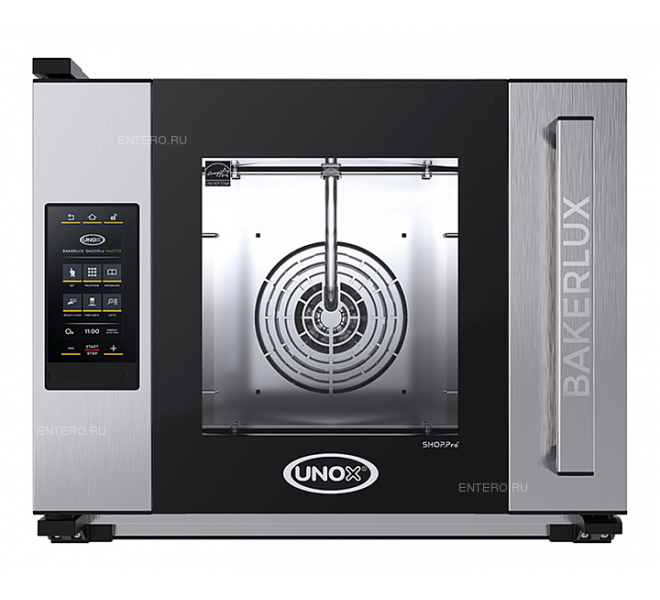 Печь конвекционная UNOX XEFT-04HS-EMRV серии BakerLux Shop.Pro предназначена для приготовления различных блюд, выпечки хлебобулочных и кондитерских изделий на предприятиях общественного питания и торговли, в пекарнях и кондитерских. Модель оснащена электронным управлением, светодиодной подсветкой и направляющими с механизмом для предотвращения опрокидывания. Легко открывающееся внутреннее стекло облегчают чистку и обеспечивает максимальную гигиену. Камера выполнена из нержавеющей стали, направляющие - из хромированной стали.