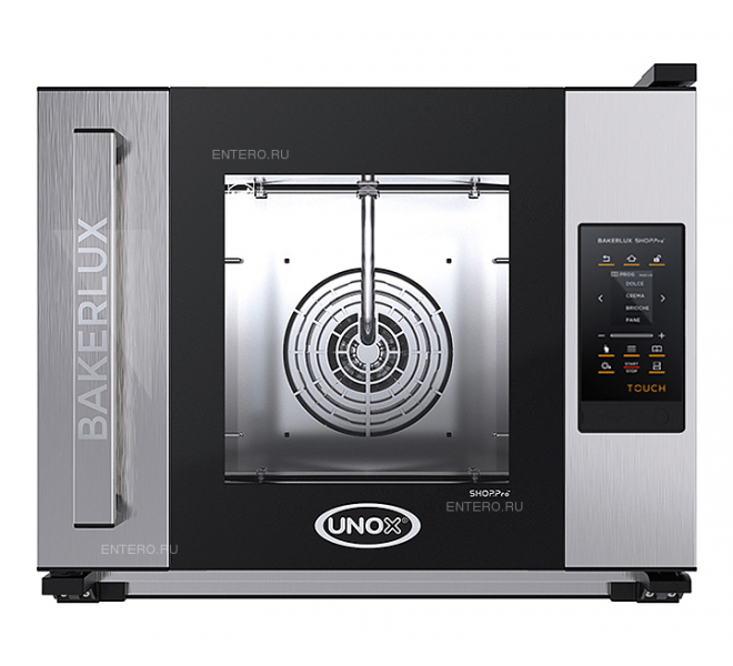 Печь конвекционная UNOX XEFT-04HS-ETLV серии BakerLux Shop.Pro предназначена для приготовления различных блюд, выпечки хлебобулочных и кондитерских изделий на предприятиях общественного питания и торговли, в пекарнях и кондитерских. Модель оснащена электронным управлением, светодиодной подсветкой и направляющими с механизмом для предотвращения опрокидывания. Легко открывающееся внутреннее стекло облегчают чистку и обеспечивает максимальную гигиену. Камера выполнена из нержавеющей стали, направляющие - из хромированной стали.