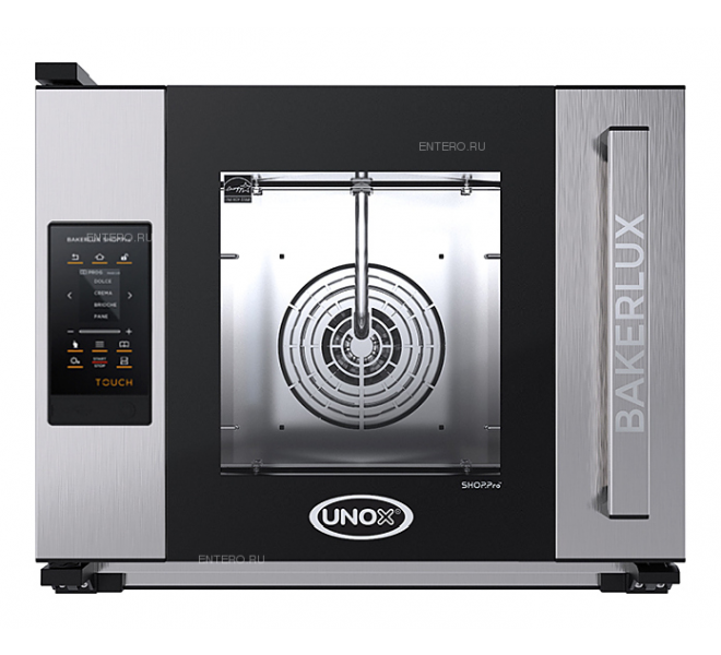 Печь конвекционная UNOX XEFT-04HS-ETRV серии BakerLux Shop.Pro предназначена для приготовления различных блюд, выпечки хлебобулочных и кондитерских изделий на предприятиях общественного питания и торговли, в пекарнях и кондитерских. Модель оснащена электронным управлением, светодиодной подсветкой и направляющими с механизмом для предотвращения опрокидывания. Легко открывающееся внутреннее стекло облегчают чистку и обеспечивает максимальную гигиену. Камера выполнена из нержавеющей стали, направляющие - из хромированной стали.