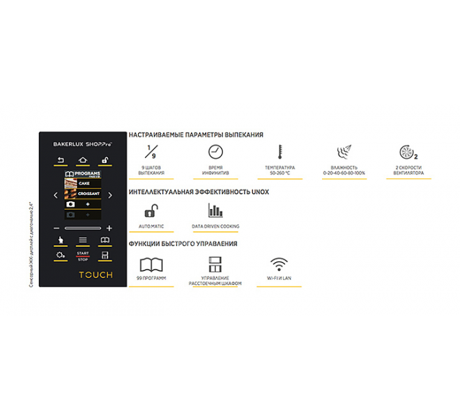 - Паронепроницаемая панель управления TOUCH с ЖК- дисплеем