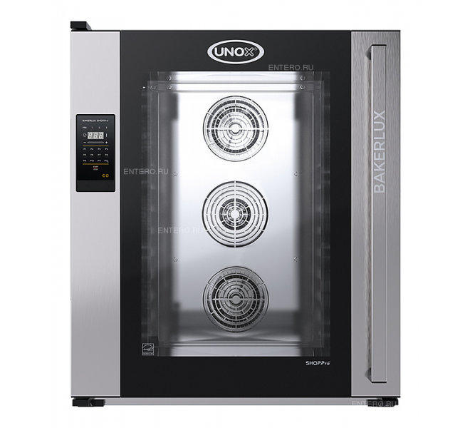 Печь конвекционная UNOX XEFT-10EU-EGLN серии BakerLux Shop.Pro предназначена для приготовления различных блюд, выпечки хлебобулочных и кондитерских изделий на предприятиях общественного питания и торговли, в пекарнях и кондитерских. Модель оснащена электронным управлениемЮ светодиодной подсветкой и L-образными направляющими. Легко открывающееся внутреннее стекло облегчают чистку и обеспечивает максимальную гигиену. Камера выполнена из нержавеющей стали, направляющие - из хромированной стали.