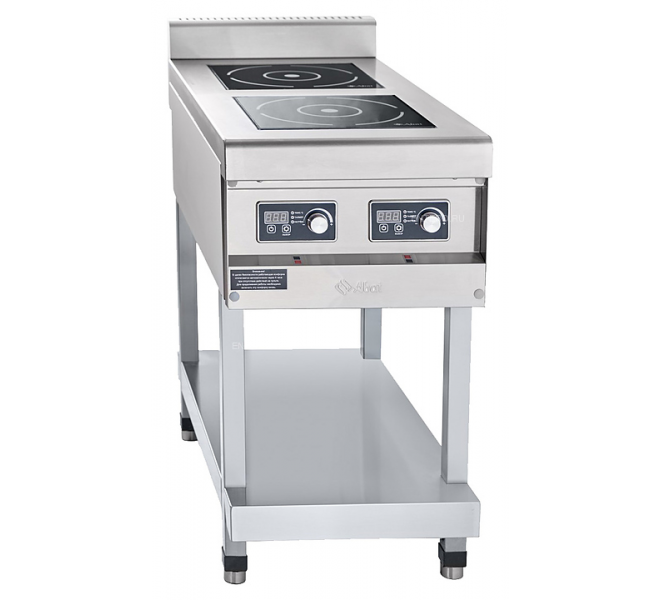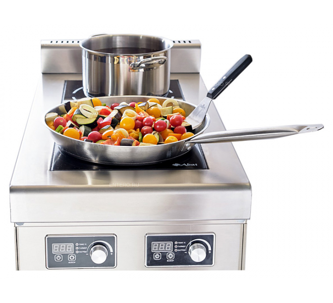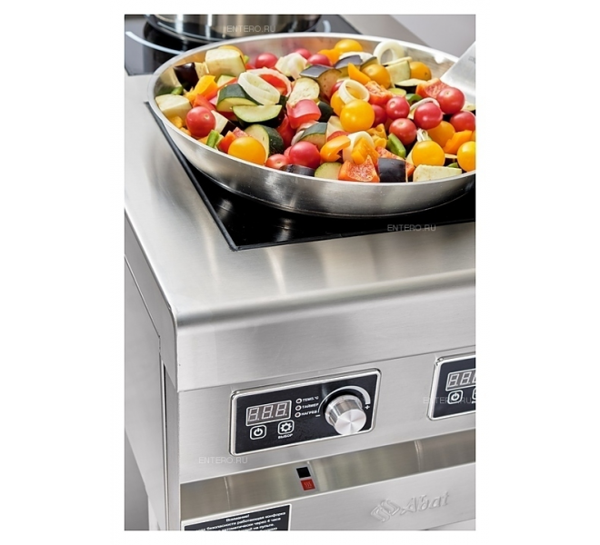 Индукционная плита Abat КИП-29П-3,5-01 предназначена приготовления первых, вторых и третьих блюд в специальной наплитной посуде на предприятиях общественного питания и торговли. Модель оснащена регулируемыми по высоте ножками. Может использоваться посуда из нержавеющей стали или алюминия с ферромагнитным дном, чугунная посуда. Модель оснащена регулируемыми по высоте ножками. Лицевая панель, подставка с полкой и боковые стенки плит выполнены из высококачественной нержавеющей стали.