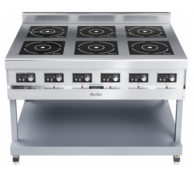 Индукционная плита Abat КИП-69П-3,5-01 предназначена приготовления первых, вторых и третьих блюд в специальной наплитной посуде на предприятиях общественного питания и торговли. Модель оснащена регулируемыми по высоте ножками. Может использоваться посуда из нержавеющей стали или алюминия с ферромагнитным дном, чугунная посуда. Лицевая панель, подставка с полкой и боковые стенки плит выполнены из высококачественной нержавеющей стали, рабочая поверхность - из стеклокерамики.