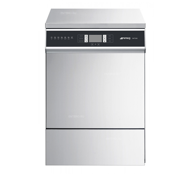 Посудомоечная машина с фронтальной загрузкой Smeg SWT260D используется на предприятиях общественного питания и торговли для мойки столовых приборов, тарелок, стаканов, чашек и другой посуды. Модель оснащена электронной панелью управления. Корпус и моющие рукава выполнены из нержавеющей стали AISI 304.