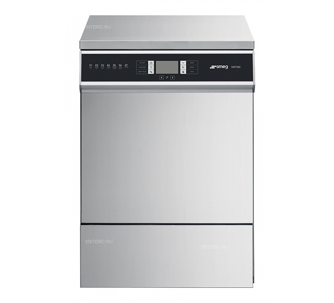 Посудомоечная машина с фронтальной загрузкой Smeg SWT260XD используется на предприятиях общественного питания и торговли для мойки столовых приборов, тарелок, стаканов, чашек и другой посуды. Модель оснащена электронной панелью управления. Корпус и моющие рукава выполнены из нержавеющей стали AISI 304.