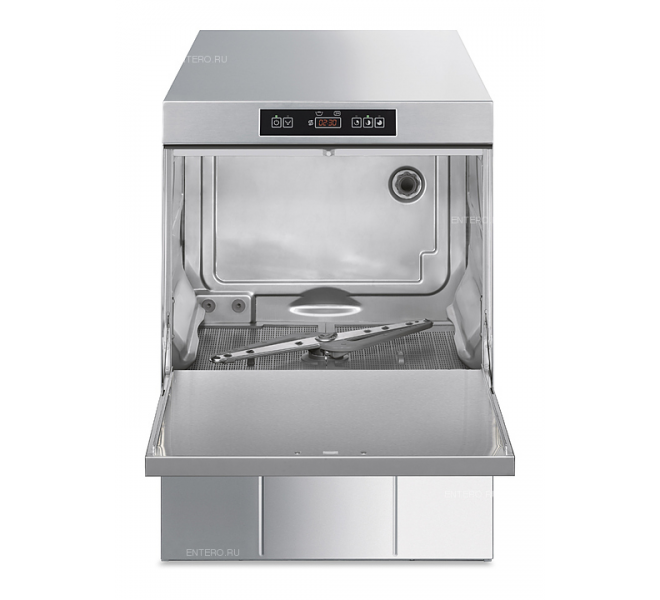 Посудомоечная машина с фронтальной загрузкой Smeg UD505DS серии Ecoline используется на предприятиях общественного питания и торговли для мойки столовых приборов, тарелок, стаканов, чашек и другой посуды. Модель оснащена электронной панелью управления. Корпус выполнен из нержавеющей стали AISI 304.