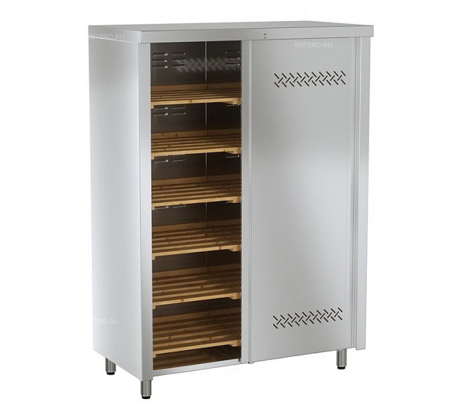 Шкаф ATESY ШЗХ-С-1300.600-02-К серии Стандарт используется на предприятиях общественного питания и торговли для хранения хлеба и хлебобулочных изделий. Модель оснащена дверями-купе с перфорацией и замком. Корпус выполнен из нержавеющей стали AISI 430, полки - из древесины.