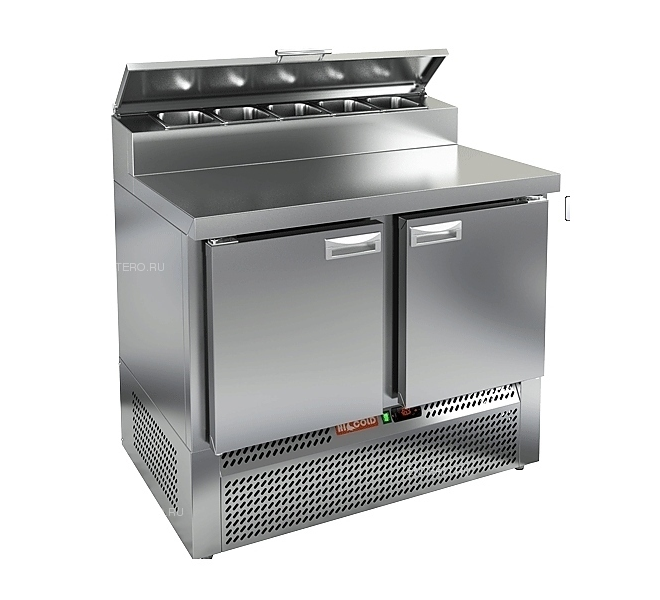 ⭐⭐⭐⭐⭐ Охлаждаемый стол для пиццы HICOLD PZE2-11/GN (1/6H) выполнен из нержавеющей стали . Верх стола накрыт столешницей.