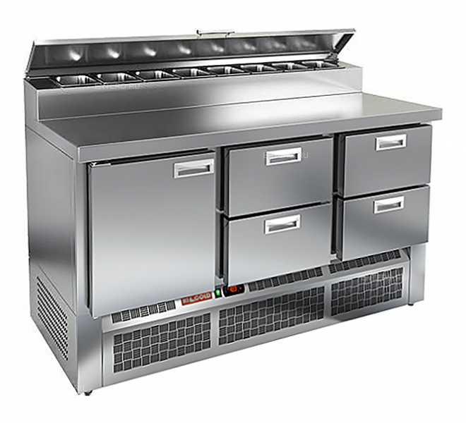 Стол для пиццы HICOLD PZE2-122/GN (1/6H) предназначендля раскатки теста и обработки ингредиентов для приготовления пиццы, сэндвичей и других блюд, а также для охлаждения и кратковременного хранения скоропортящихся продуктов и напитков на предприятиях общественного питания и торговли. Модель оснащена удобной в использовании электронной панелью управления. Корпус и столешница выполнены из нержавеющей стали.