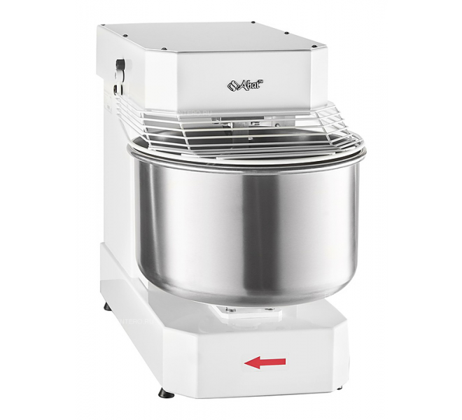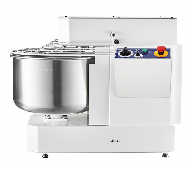 Корпус выполнен из высококачественной конструкционной стали с полимерным покрытием, металлические детали машины, контактирующие с продуктом во время замеса (спираль, дежа, нож) - из нержавеющей стали AISI 304.