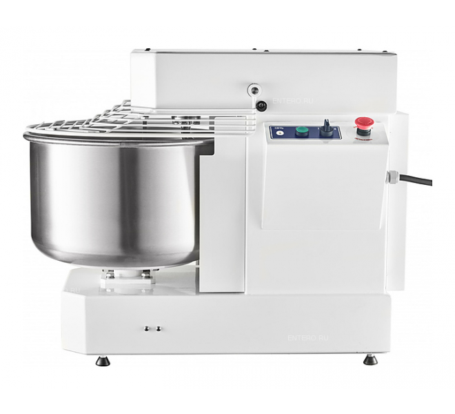Корпус выполнен из высококачественной конструкционной стали с полимерным покрытием, металлические детали машины, контактирующие с продуктом во время замеса (спираль, дежа, нож) - из нержавеющей стали AISI 304.