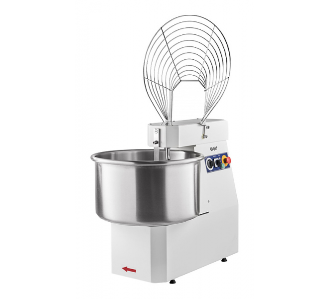 Корпус выполнен из высококачественной конструкционной стали с полимерным покрытием, металлические детали машины, контактирующие с продуктом во время замеса (спираль, дежа, нож) - из нержавеющей стали AISI 304.