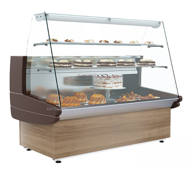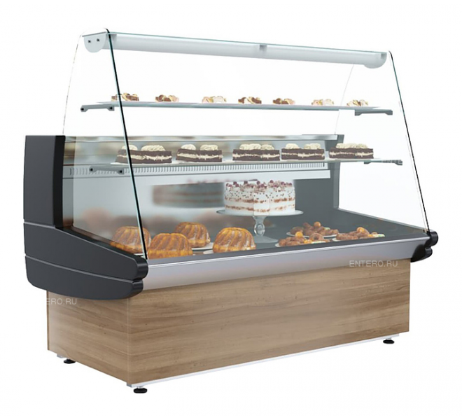Кондитерская витрина Carboma K85 SM 1,5-1 (ВХСд-1,5 ЭКО (Паттерн)) предназначена для демонстрации, охлаждения и кратковременного кондитерских изделий, десертов и сэндвичей на предприятиях общественного питания и торговли. Модель оснащена микропроцессорным блоком управления с индикатором температуры, 2 полками, ночными шторками из органического стекла и регулируемыми ножками высотой от 20 до 35 м. Зона выкладки и столешница выполнены из стали серого цвета, боковины - из коричневого, серого или черного пластика, нижняя панель - из паттерна ольхи.